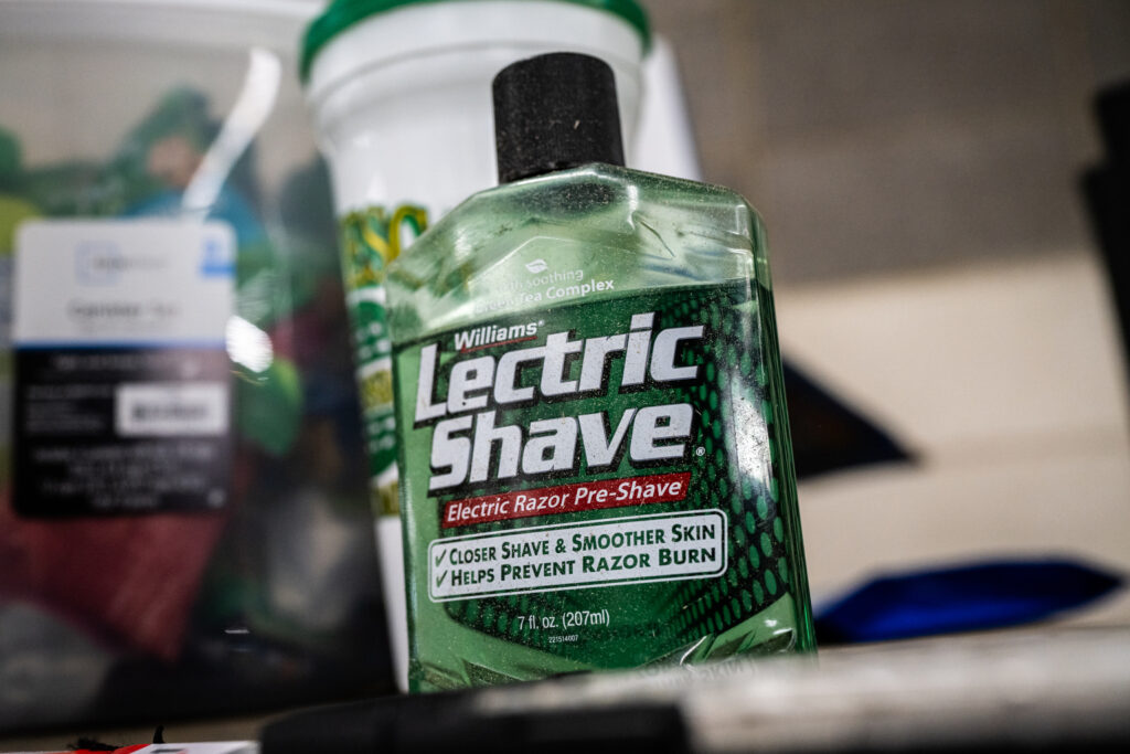 Hart Van Denburg/CPR NewsAll manner of products are used on the show cattle’s coat and hide in an effort to better show the animal’s natural posture, structure, size, balance and more. That includes Lectric Shave to keep the cattle smelling good. As soon as they’re brought back from the show ring, it’s all cleaned off.