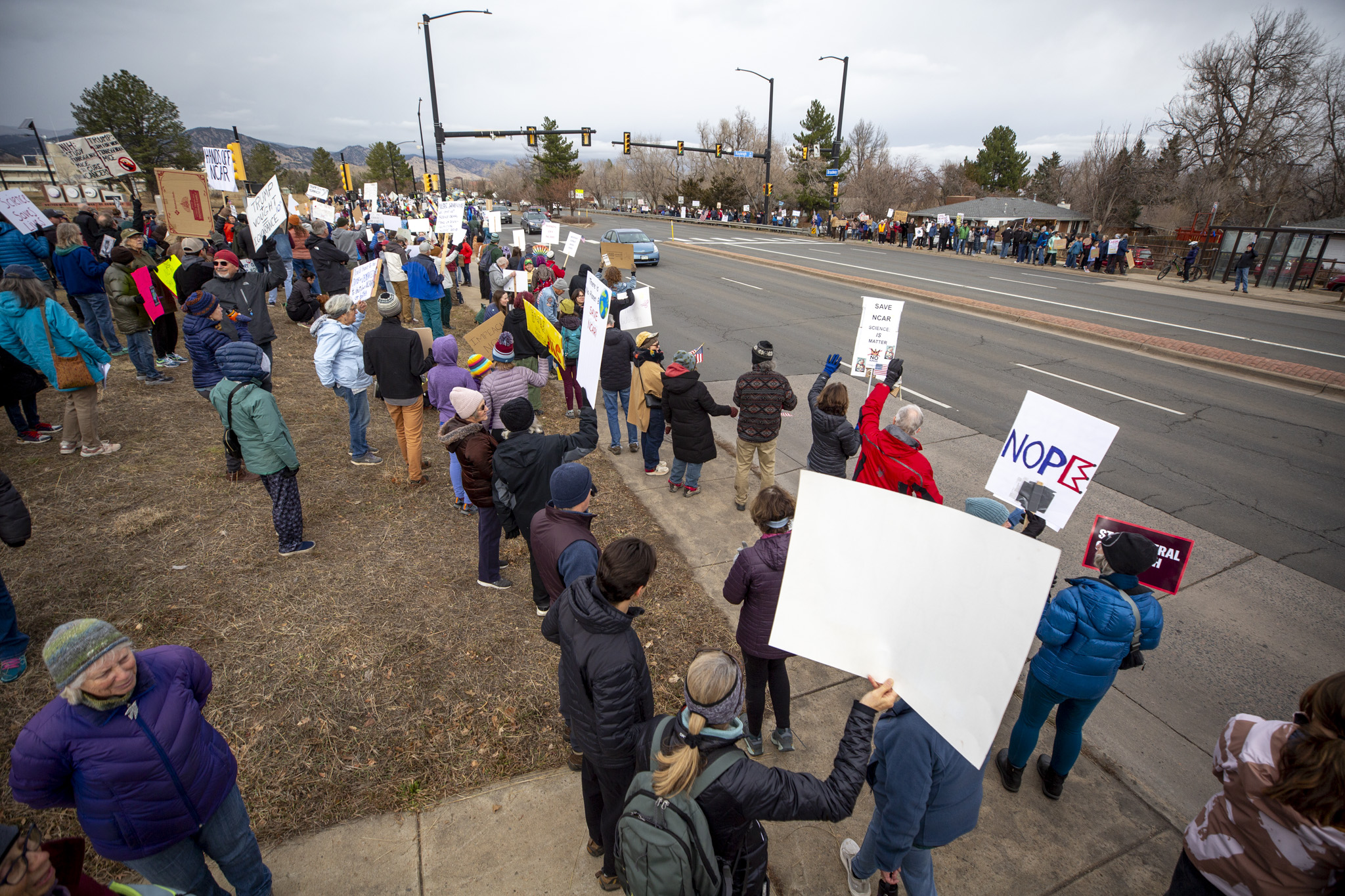 Protesters in Boulder chanted in support of science, while also wondering why this center in particular was on the chopping block. The area around NCAR is home to popular hiking trails.