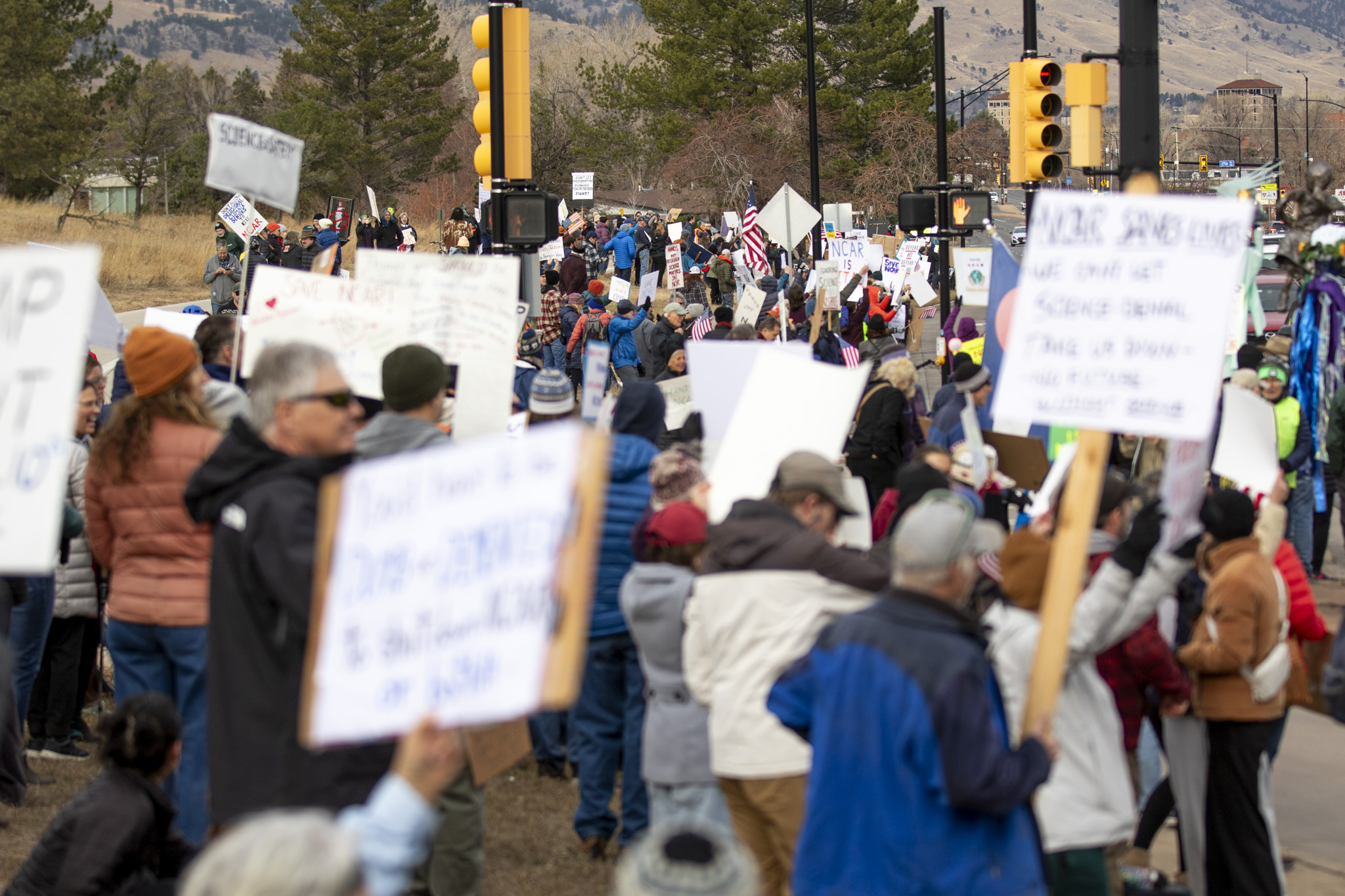 Hundreds of protesters gathered in Boulder on Saturday in support of the National Center for Atmospheric Research (NCAR), which the Trump administration has vowed to dismantle.
